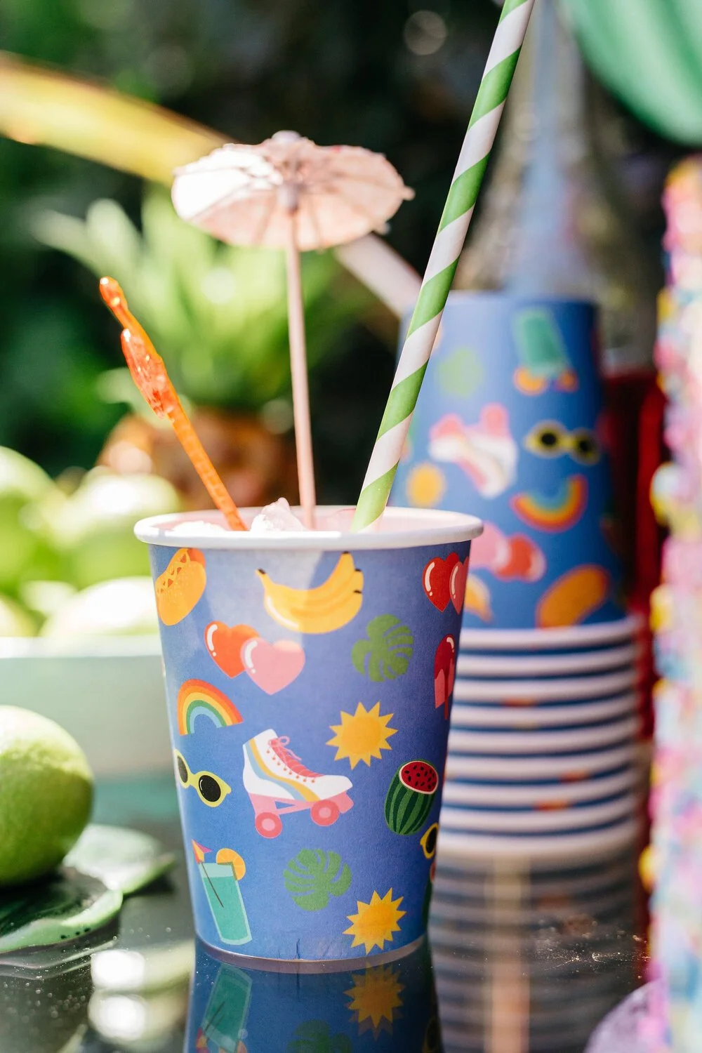 I designed a collection of vibrant and playful partyware for party supply brand We Love Sundays. My summery, retro-inspired illustrations featured across cups, plates, lolly bags piñatas and napkins.